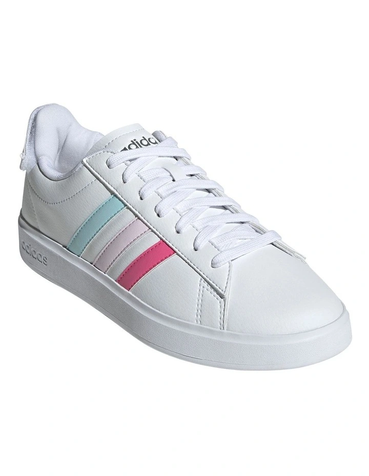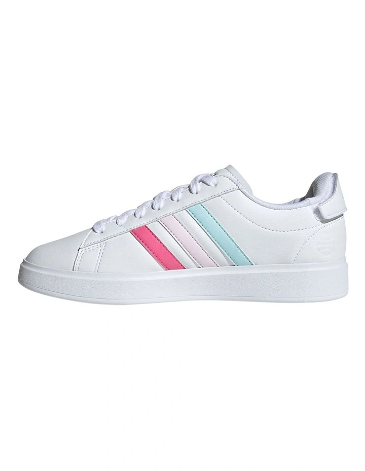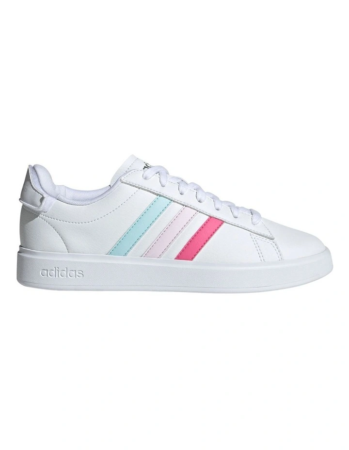 Put some spin on your look with these adidas Grand Court shoes. An updated take on a classic tennis-inspired shape, they’re made to flex with each step. Cloudfoam cushioning gently holds your feet in place so you can wear them comfortably right through to the evening. And even then, there’s no missing the colourful 3-Stripes. Made with a series of recycled materials, this upper features at least 50% recycled content. This product represents just one of our solutions to help end plastic waste.
