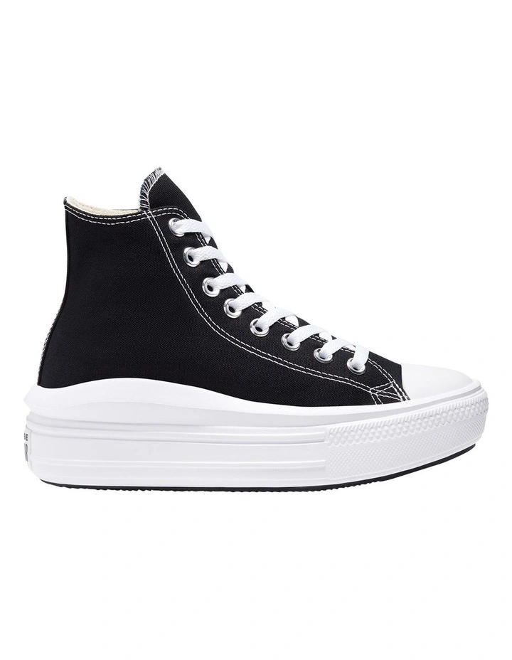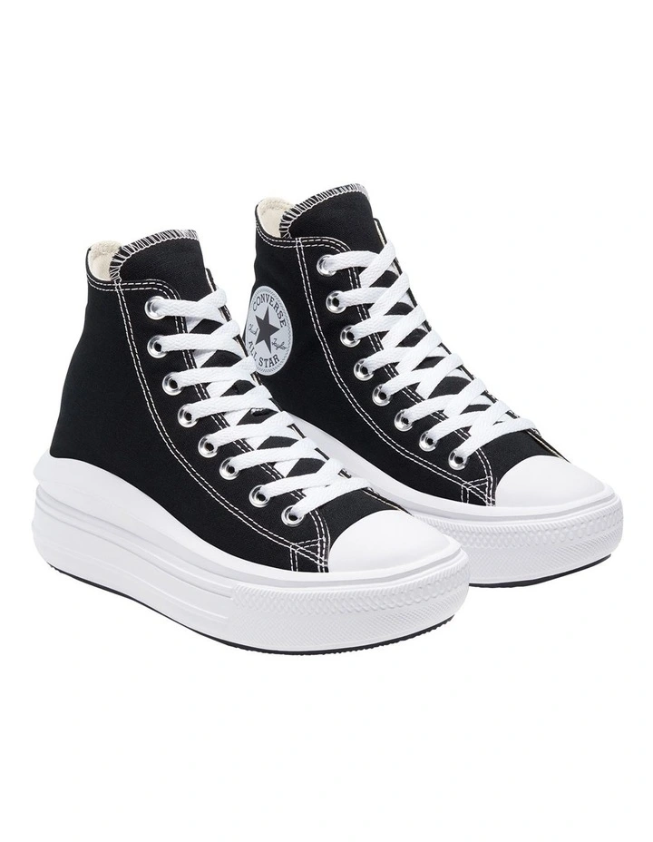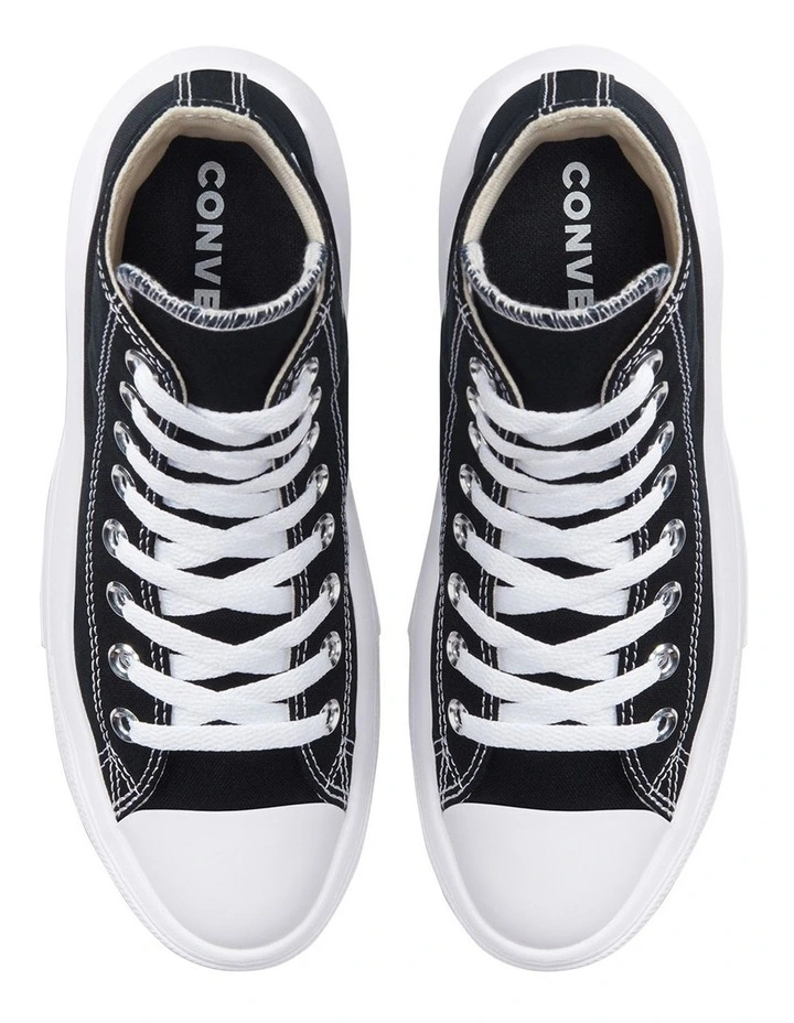 HER MOVE. You already know our high-topthat canvas upper, the diamond pattern outsole, and iconic ankle patch. We streamlined this classic silhouette for her and dropped it into an ultra-lightweight EVA cupsole, giving you the Chuck Taylor Move. With extra comfort and height. There she goes.