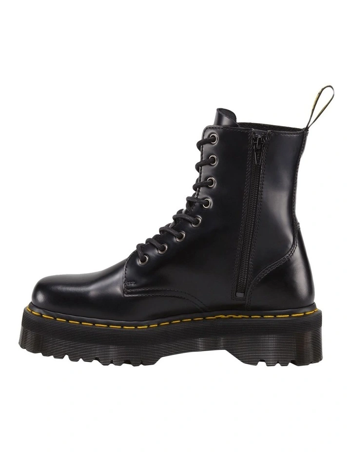 A fierce evolution of our 8-eye boot, the Jadon retains all its original details grooved edges, yellow stitching and a heel-loop and adds a chunky, empowering platform sole.