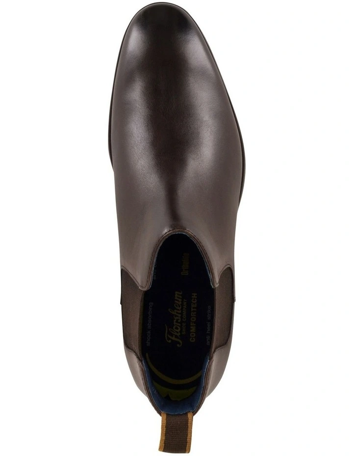 A Dress Casual side gusset Chelsea boot Fullgrain Calf leather upper Suedetech microfibre and leather lining Moulded Rubber Flexsole with stitched randing Breathable Suedetech sock with Ortholite foam Durable non-slip rubber toplift Moulded EVA heel cup for added stability Elastic Side gusset EEE fitting with additional Dual fit option