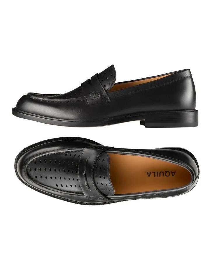 Give a nod to the season’s statement loafer trend with a pair like the Fredrick Black Leather loafers. This classic penny loafer with subtle perforated detail sits on a sturdy leather sole, making it a great loafer option for any season.
