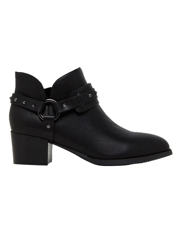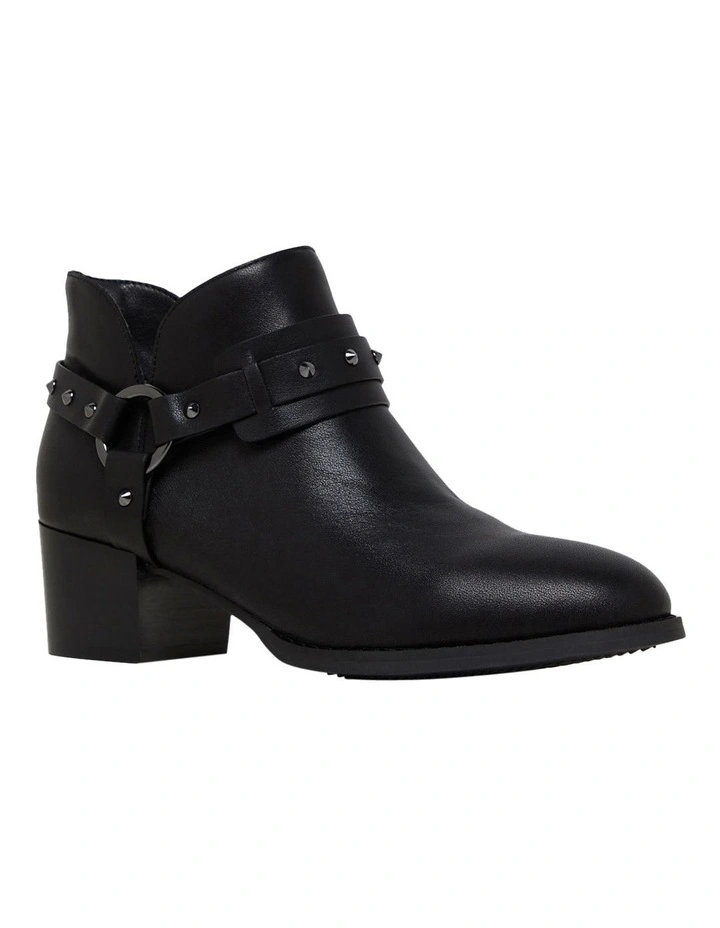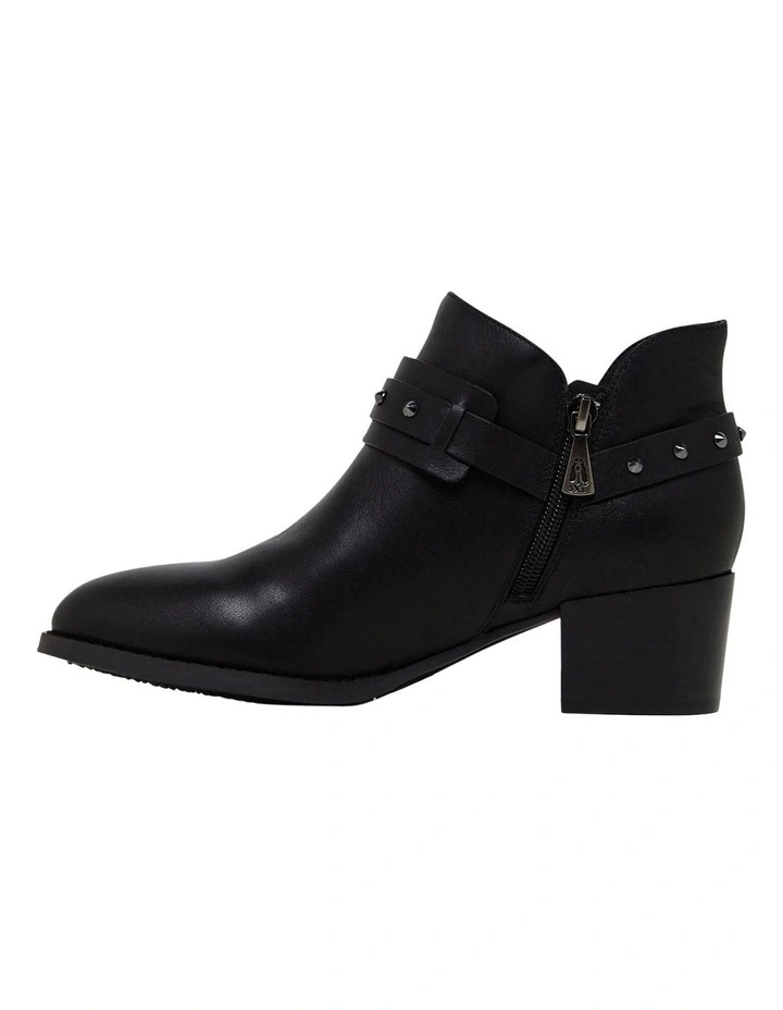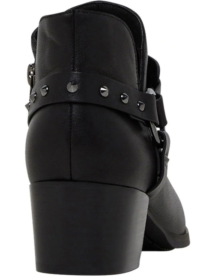 Low-ankle, low-heel, and high comfort. Curved leather uppers and studded tri-belt straps makes it bold and edgy with a hint of fun.