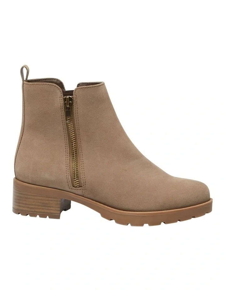 Blending style and functionality, INDIGO by Sandler adds a refined touch to a cosy ankle boot silhouette. Featuring side zips and a pull tab, it sits atop a slight heel and tapers to a round toe. Wear yours to channel a sophisticated look.