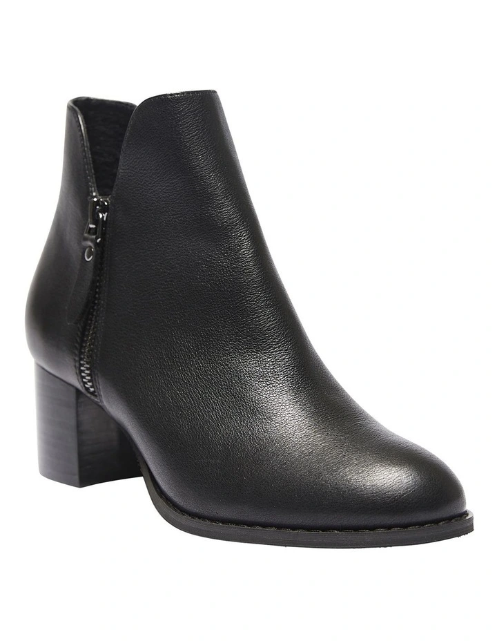 LATCH lends a modern touch to the classic round-toe shape ankle boot. They’re crafted with a leather upper that fasten with the chic double side zippers, then set on a comfortable block heel. Style them as the statement end to printed dress with a coat.