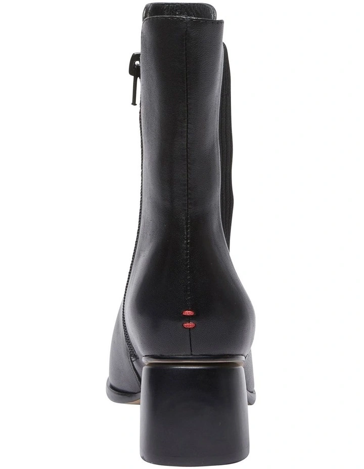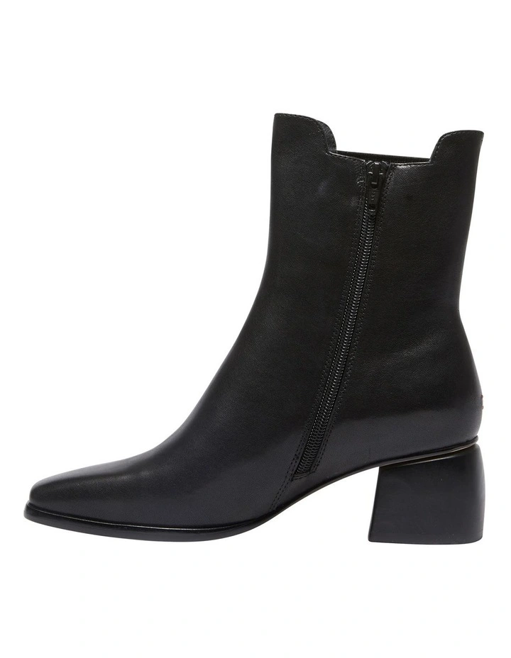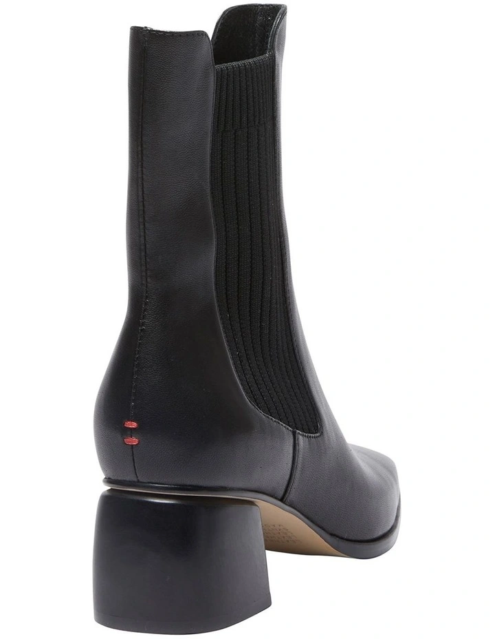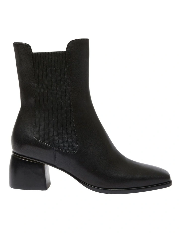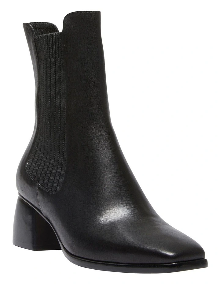 Contemporary chic takes centre stage in PEDRO by Jane Debster, a structured ankle boot design. Atop a mid block heel, it is crafted with a sleek square toe and sock-like elasticated gussets. For a modern look, pair yours with straight-leg jeans or a silk midi.