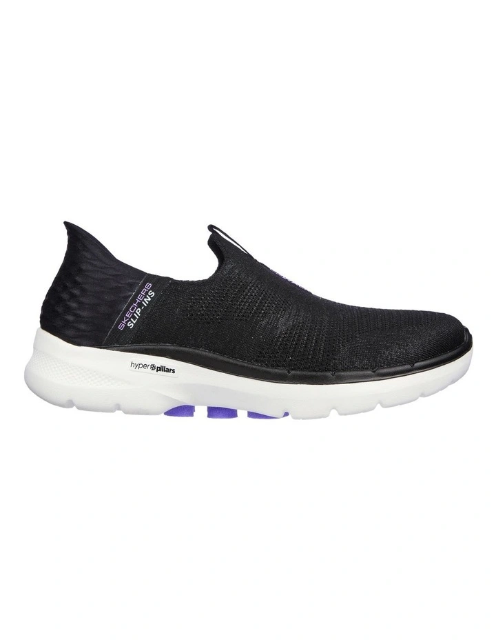 TOUCHLESS FIT Step up your routine with easygoing comfort wearing Skechers Hands Free Slip-ins: GO WALK 6 – Fabulous View. Designed with our exclusive Heel Pillow. This style features an engineered knit upper with lightweight ULTRA GO cushioning, Skechers Air-Cooled Goga Mat insole and supportive high-rebound Hyper Pillars.
