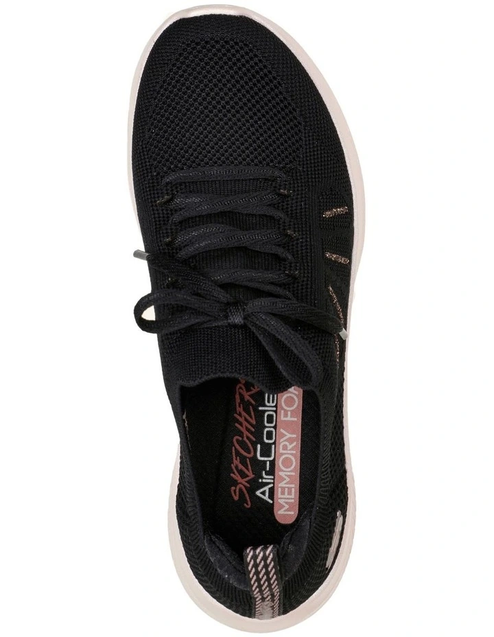 Add a little shine to your style with a sporty favorite wearing Skechers Ultra Flex 3.0 – Glowing Sky. This Stretch Fit slip-on features an engineered knit upper with decorative laces, glitter and iridescent trim, plus a cushioned Skechers Air-Cooled Memory Foam insole.
