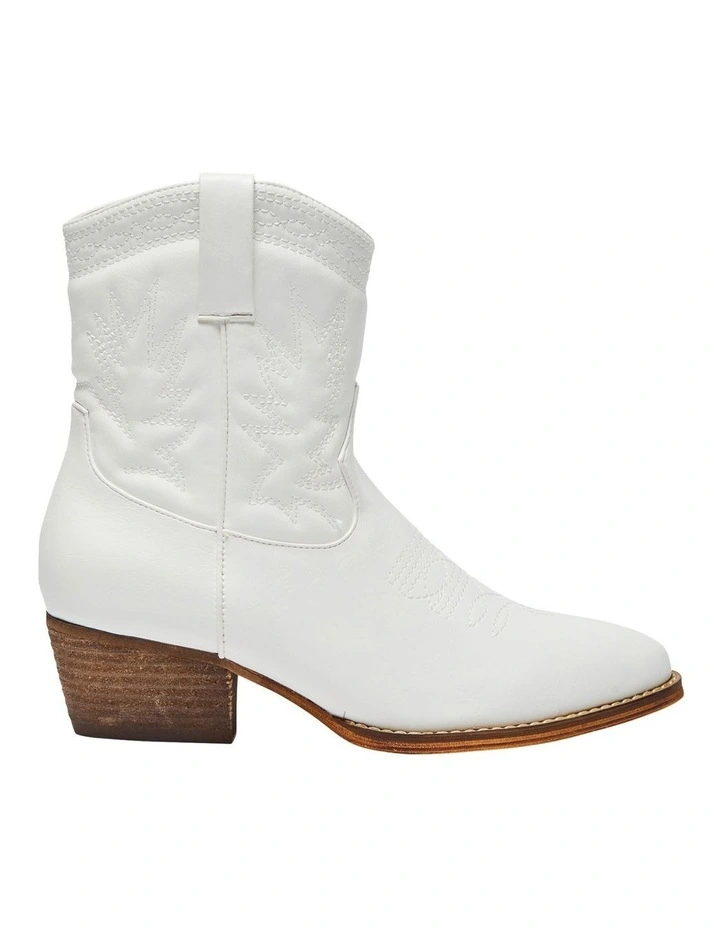 The verdict is here: Western aesthetic is back in vogue this season and TEXAS by Ravella fully embodies this trend with its cowboy-inspired ankle boot design. Adorned by artistic embroidery, it features a sleek pointed toe, low slant heel and inner zip. Embrace the wilderness and style yours with denim pieces.