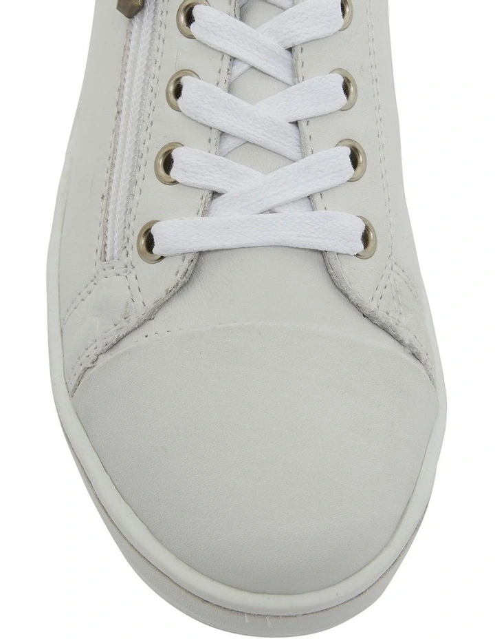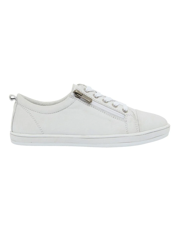 WHISPER is crafted with European leather, inside and out, and set upon a flexible rubber outsole with a side zip detail. It features an inlayed strip of upper material for a casual look.