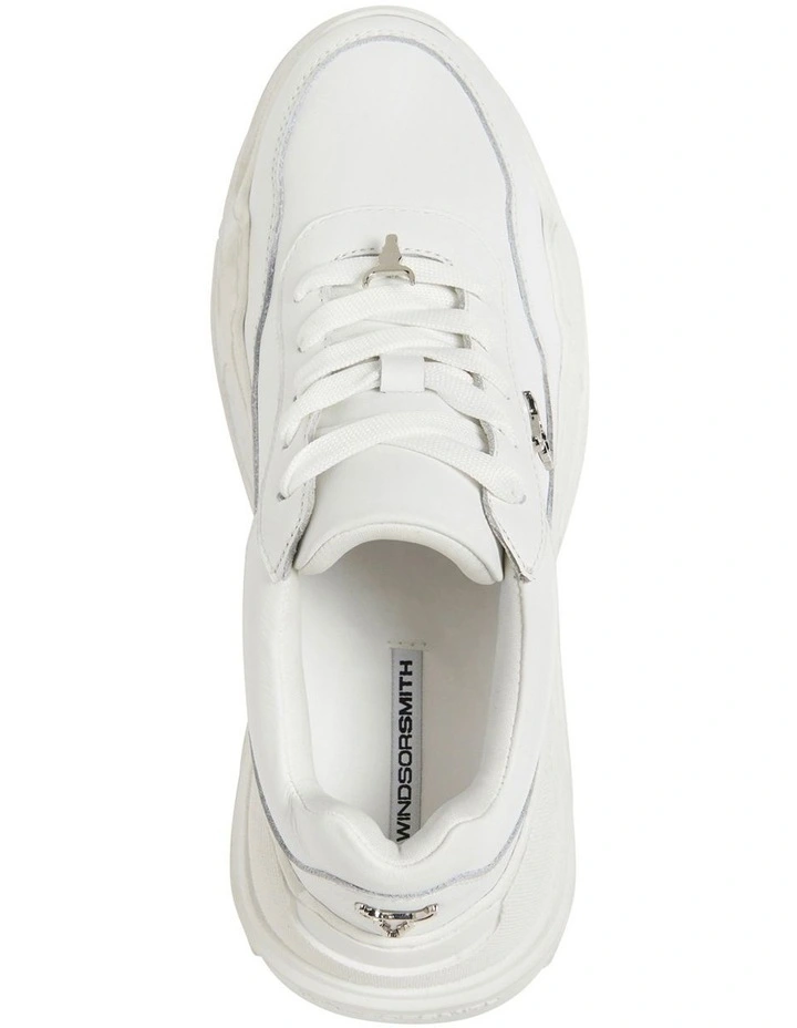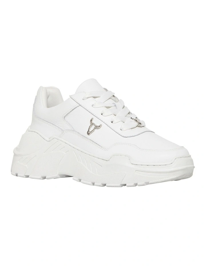 Windsor Smith Carte White Sneaker. Leather upper lace up sneaker. Lace up fastening. Bull head logo branding. Patterned sole.